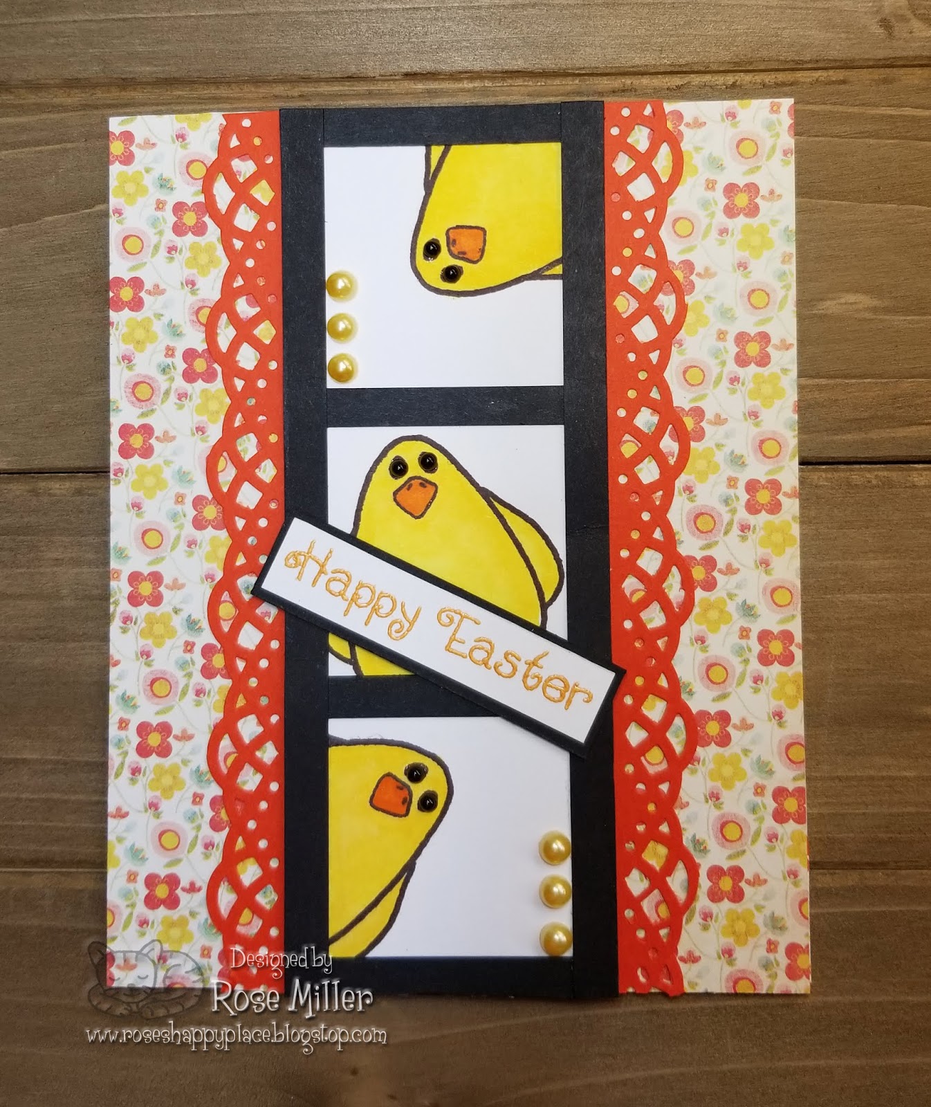 Our design team rocked this sketch!  But first, the prize a couple of weeks ago was for the randomly drawn person to guest design for us.  That winner was Rose Miller.  She flipped the sketch for a super duper cute Easter card.